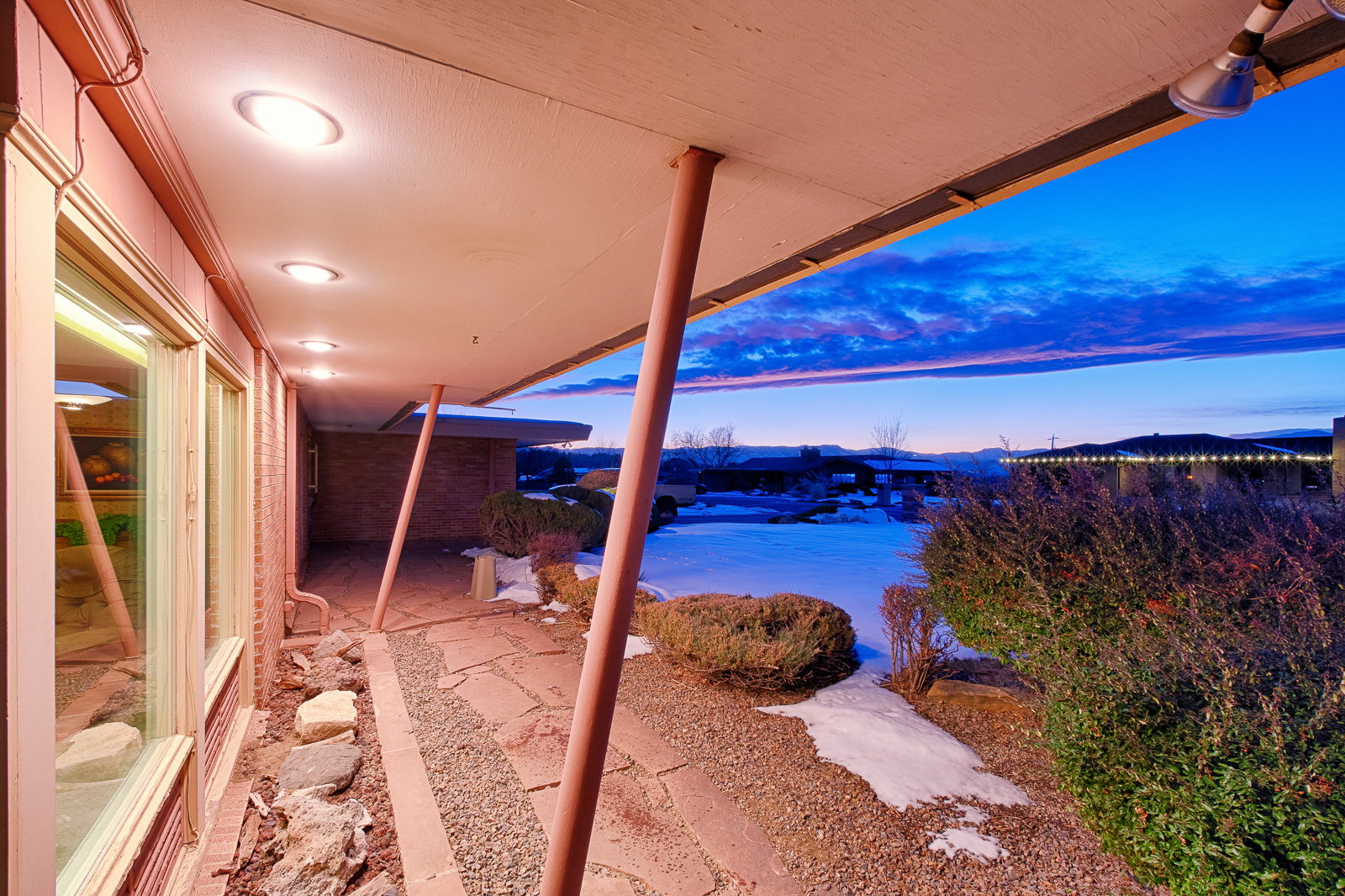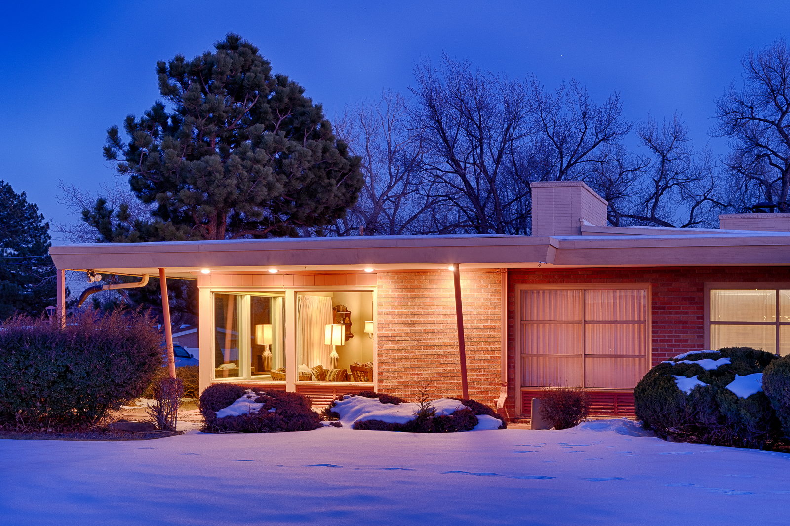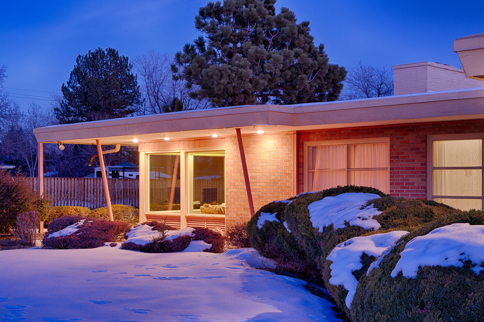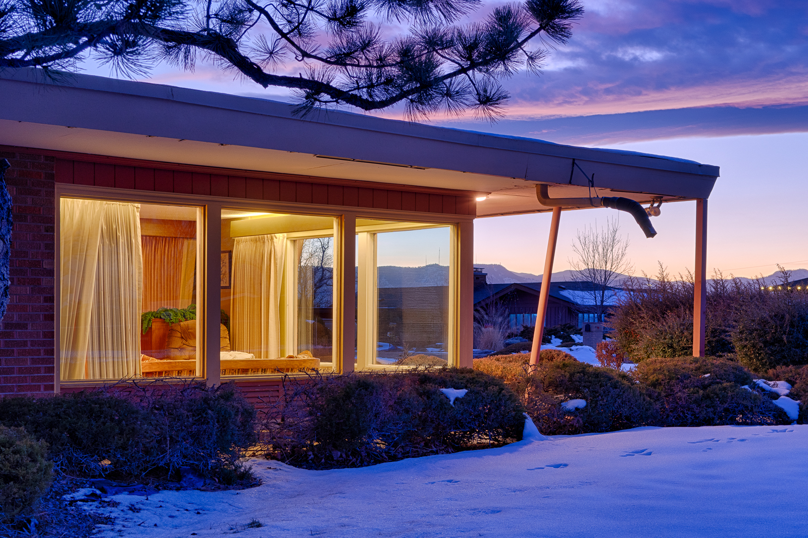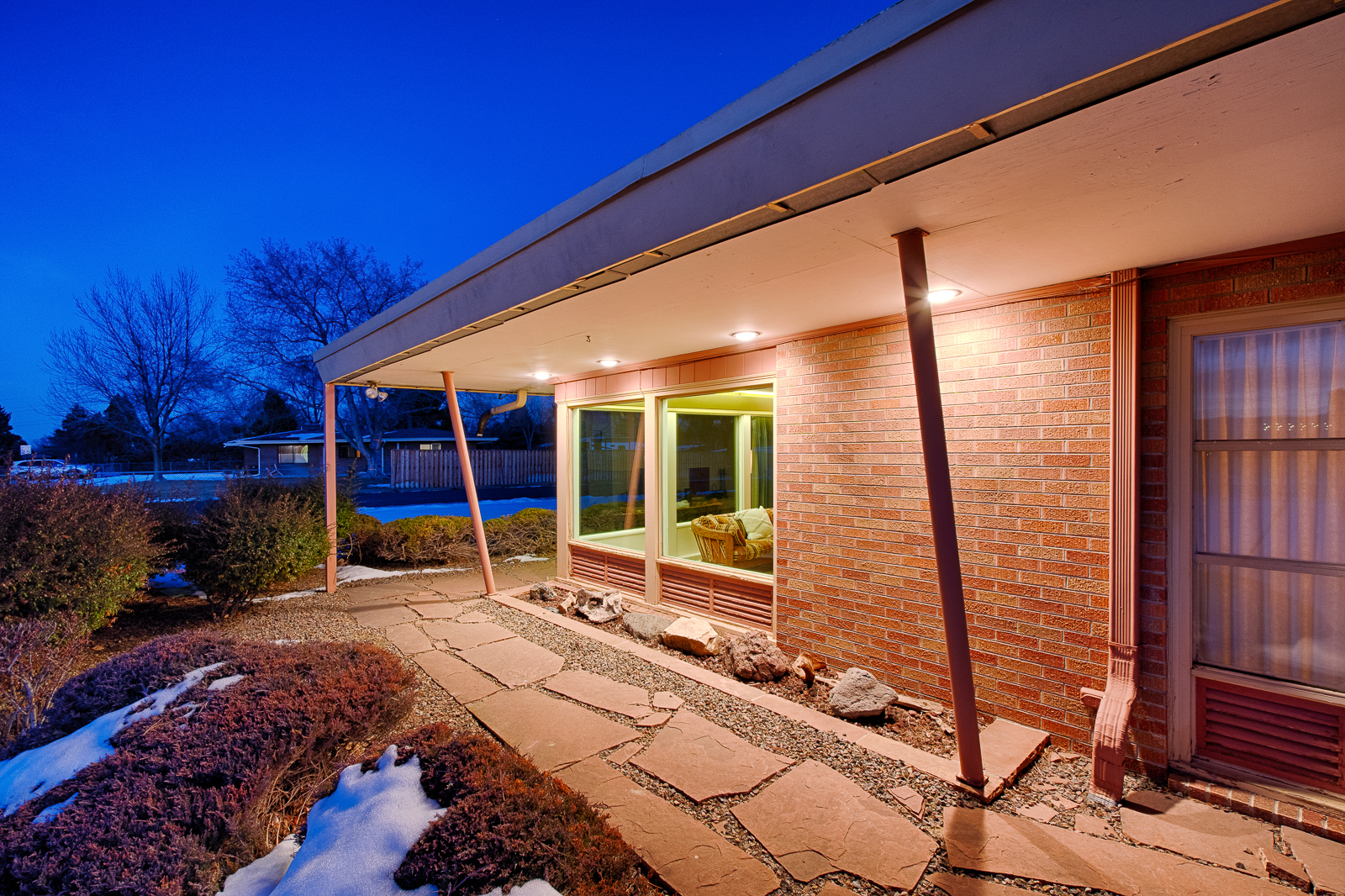 As an International Style Mid Century Modern home, "A Home with a View" is a very unique home for it's Lakewood location. Though the flat roof construction and jalousie windows are common on California homes of the same era, Colorado's variable weather cause most developers to shy away from these beautiful attributes. To compensate, deep inset overhangs sheild the home from the elements, with built in lighting to highlight the home even at night. The bitumen roof is a commercial application to withstand the occasional severe hail that finds it's way to the area.