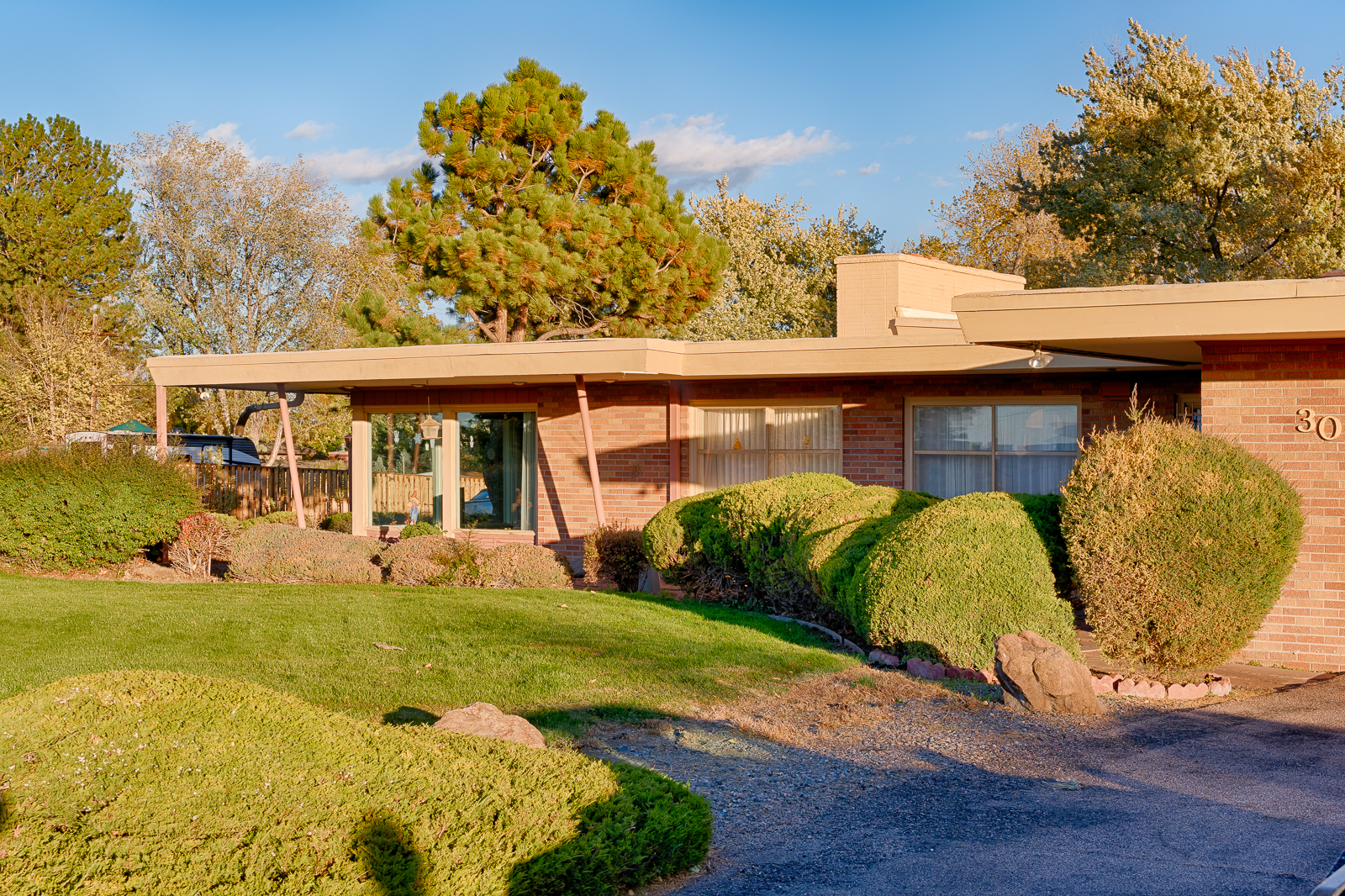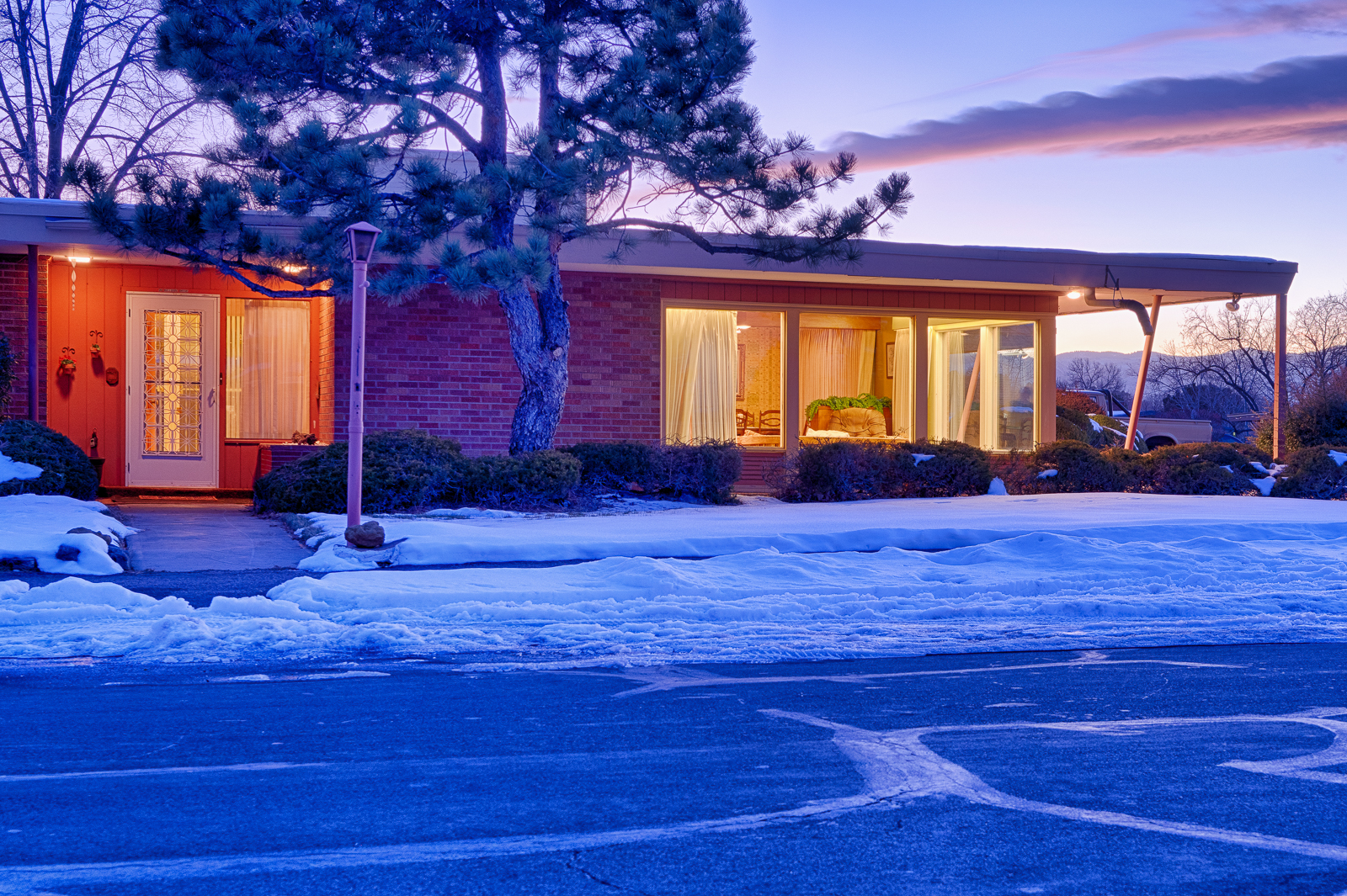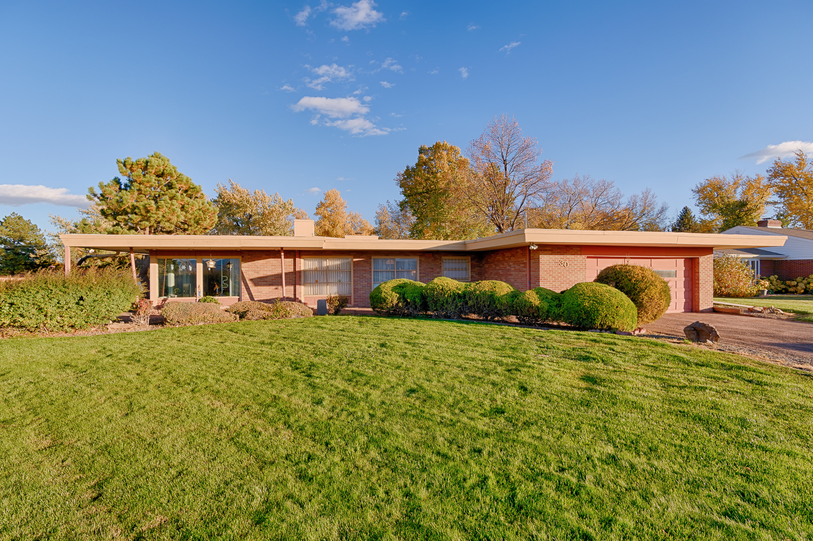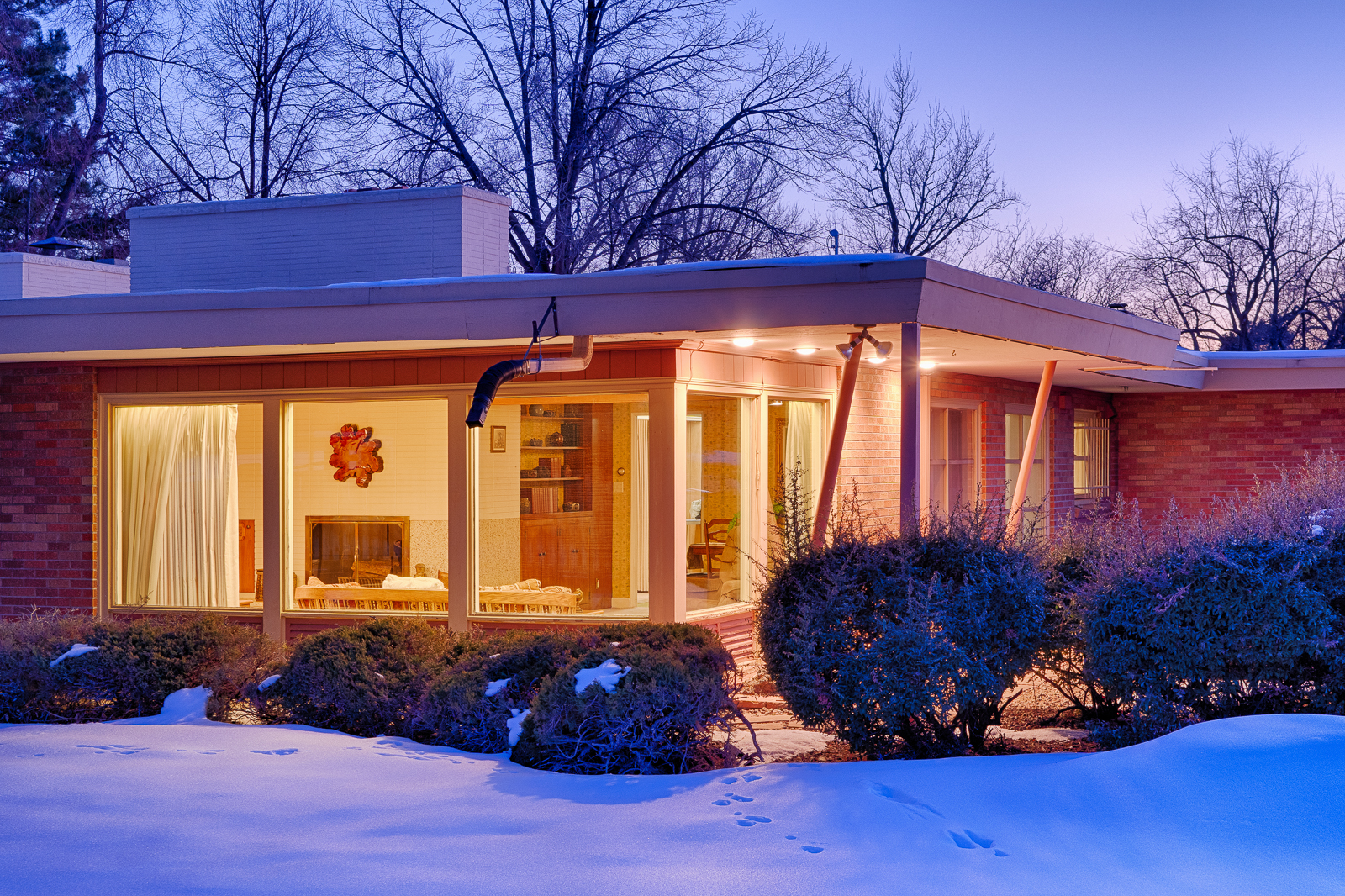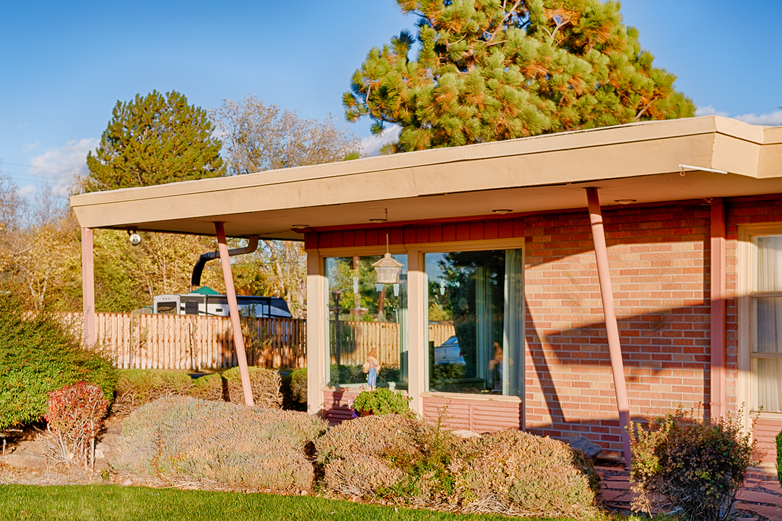 As an International Style Mid Century Modern home, "A Home with a View" is a very unique home for it's Lakewood location. Though the flat roof construction and jalousie windows are common on California homes of the same era, Colorado's variable weather cause most developers to shy away from these beautiful attributes. To compensate, deep inset overhangs sheild the home from the elements, with built in lighting to highlight the home even at night. The bitumen roof is a commercial application to withstand the occasional severe hail that finds it's way to the area.