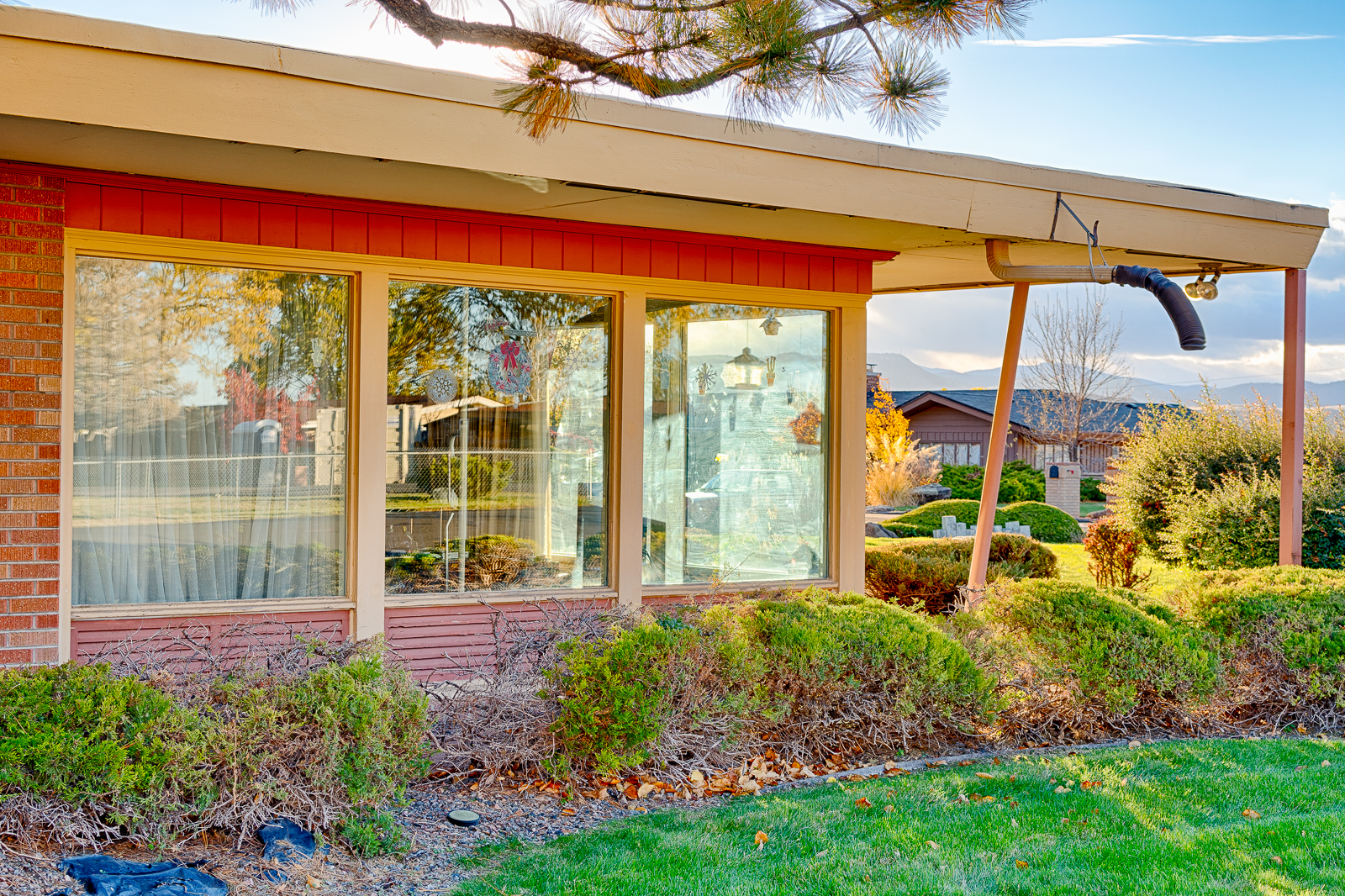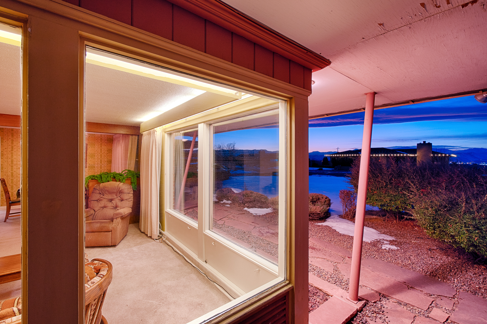 Large front windows for enjoying expansive views of the mountains. You can see traffic from I-70 from the front room. Noe the vents under the windows, these are functional and allow for cooling in the warmer summer months.